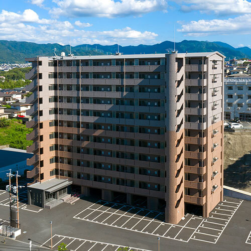 施設規模等:敷地面積2,121㎡、建築面積582㎡、全60戸、地上10階建て、貸店舗含む